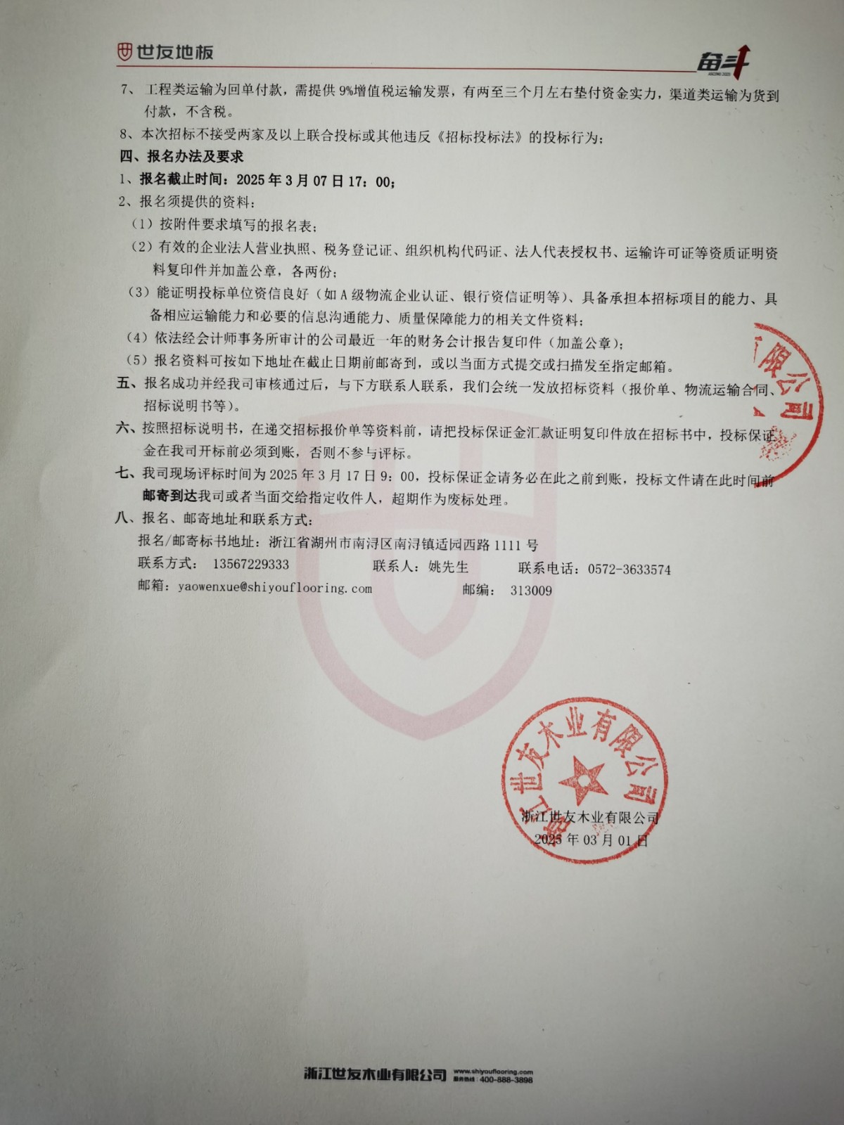 2025-26年度浙江世友木業(yè)有限公司物流招標(biāo)公告